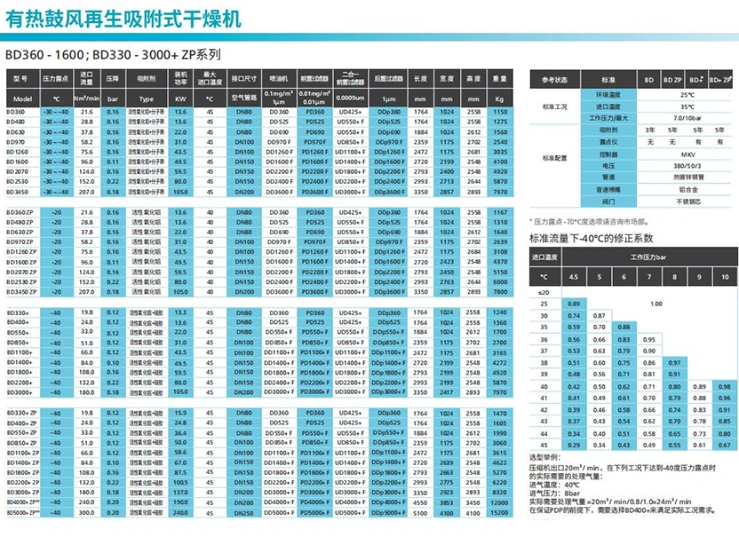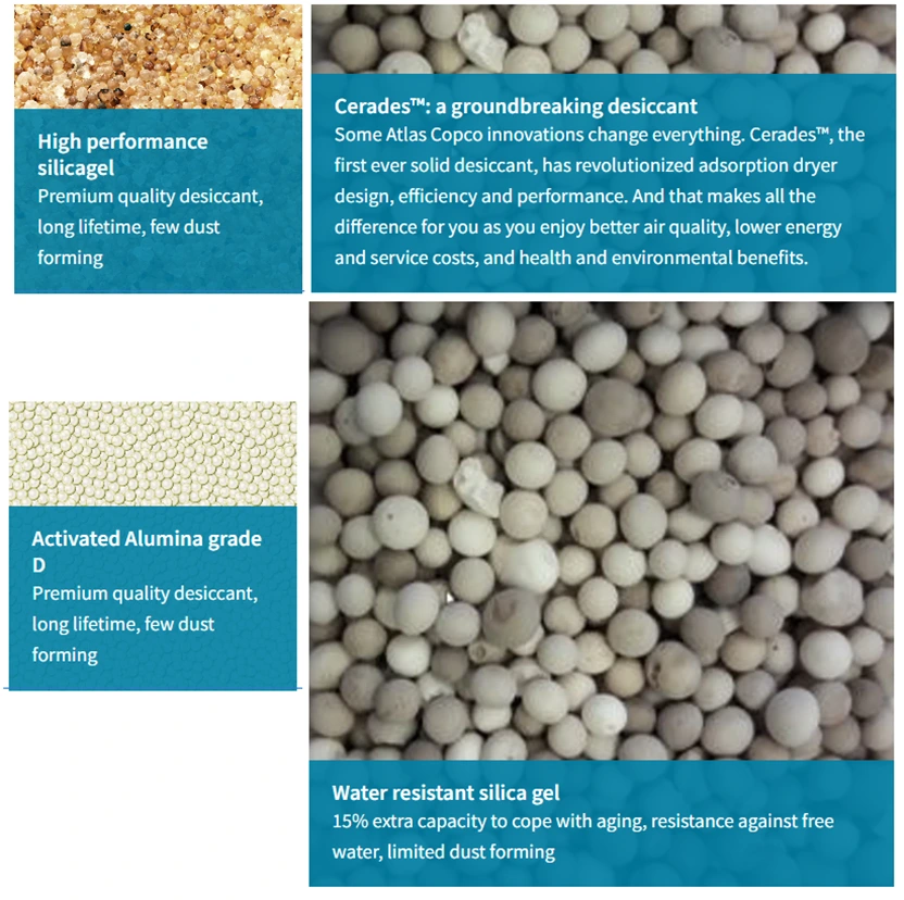 A seconda del punto di rugiada in pressione, gli essiccanti possono essere costituiti da allumina, gel di silice o materiali a setaccio molecolare. Il punto di rugiada minimo può raggiungere -70℃.