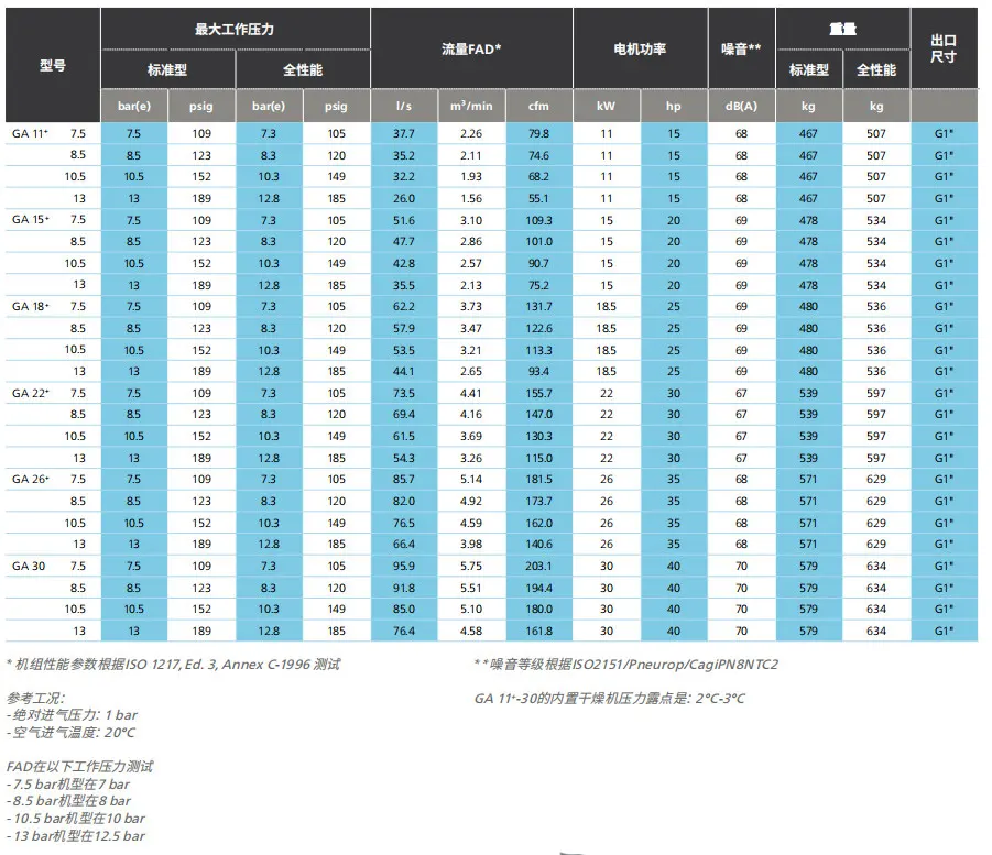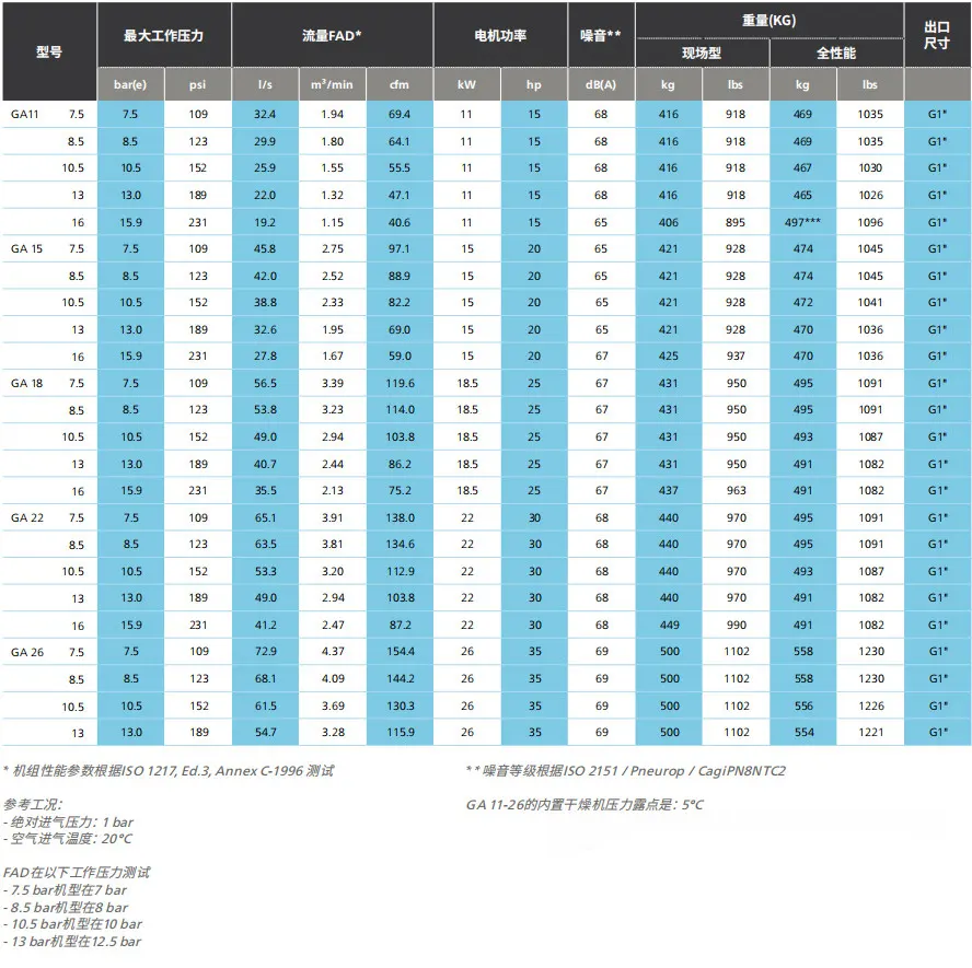 ·GA11-26 adotta un nuovo rotore e un motore ad alta efficienza IE2/IE3, durevole ed efficiente.