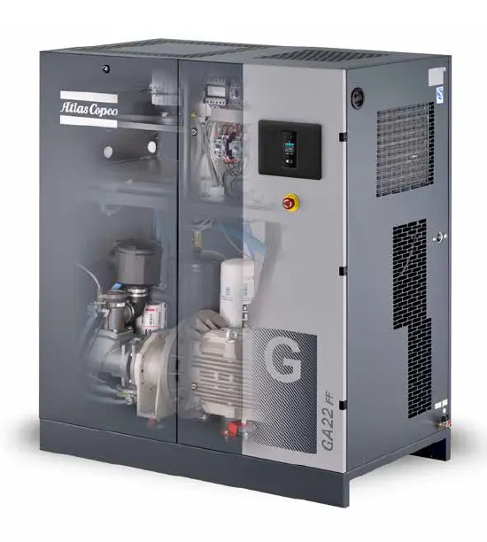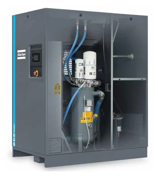 ·Il compressore a vite a iniezione d'olio utilizza la trasmissione principale e l'efficiente scatola degli ingranaggi di Atlas Copco per un'affidabilità molto elevata