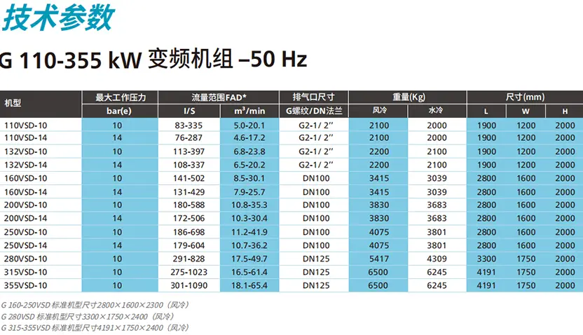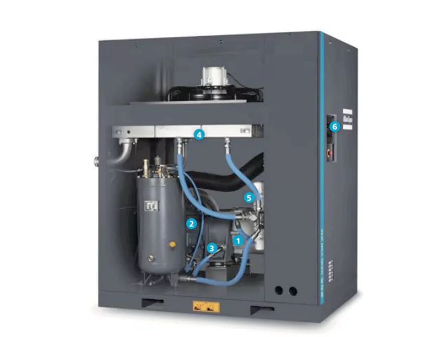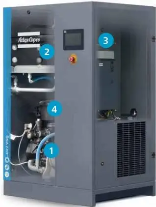 Il compressore d'aria a frequenza variabile VSD di Atlas è appositamente progettato per il funzionamento continuo. Il sistema di azionamento adotta un efficiente motore a magnete permanente, che può ottenere un eccellente effetto di raffreddamento dell'olio. La tecnologia VSD può raggiungere un risparmio energetico fino al 35% e il suo ingombro ridotto garantisce flessibilità di installazione.