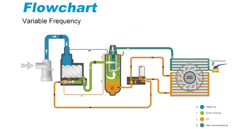 Il compressore d'aria a frequenza variabile VSD consente di risparmiare più spazio di installazione e può installare più macchine in uno spazio limitato.